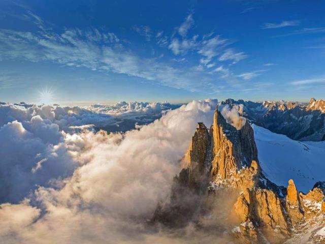 每日壁纸: 鸟瞰勃朗峰山脉中的南针峰,法国